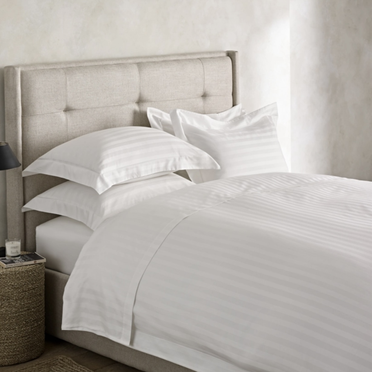 This 400 thread count bed linen is made from Egyptian-grown cotton, famed for its high quality. The satin weave gives a subtle sheen and smooth, silky feel